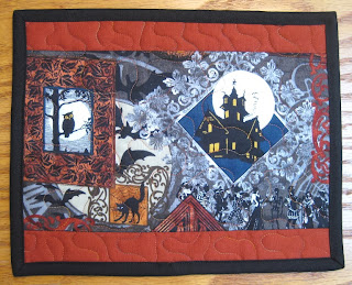 Mug rugs, placemats and table runner custom-made for Halloween. Owls and spiders and pumpkins and Ghastly designs in blacks, purples, oranges and greys. The fabrics are vibrant, some have sparkle, and they are all so very beautiful. Handmade, quilted and with such attention to detail. from Judy Whitney Creations